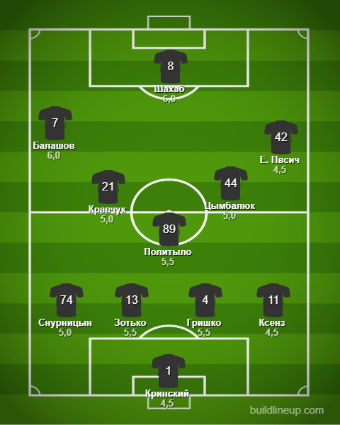 Дубинчак (71) - Зотько (11), Снурницын (60), Лукьянчук (86), Тейшейра (90)