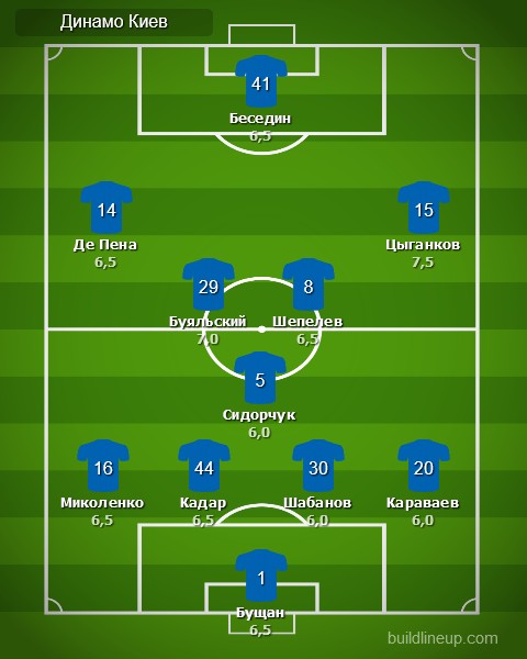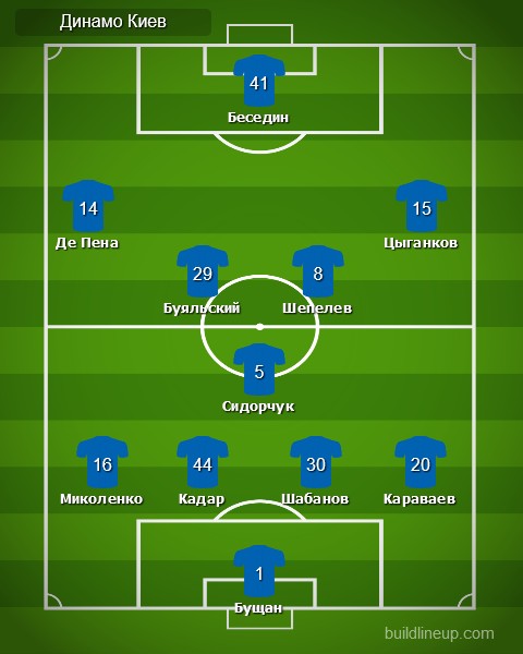 «Динамо»: Георгий Бущан – Виталий Миколенко, Артем Шабанов, Тамаш Кадар, Александр Караваев, Сергей Сидорчук, Владимир Шепелев, Карлос Де Пена (Беньямин Вербич, 76), Виталий Буяльский (Николай Шапаренко, 62), Виктор Цыганков, Артем Беседин (Фран Соль, 84)