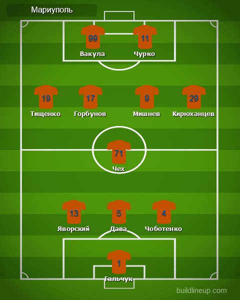 «Мариуполь»: Евгений Гальчук – Сергей Чоботенко, Дава, Сергей Яворский (Руслан Фомин, 68), Игорь Кирюханцев, Игорь Тищенко, Максим Чех, Дмитрий Мишнёв, Сергей Горбунов, Владислав Вакула (Никита Петерман, 88), Вячеслав Чурко (Алексей Кащук, 83).