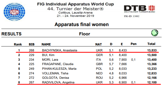 Полные результаты на вольных упражнениях: