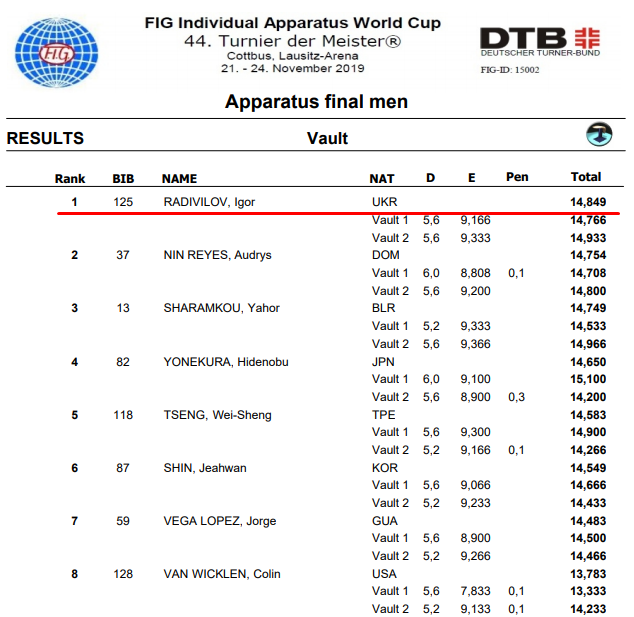 Полные результаты в опорном прыжке: