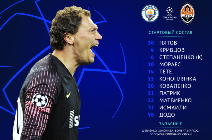 В 22:00 начнется матч Лиги чемпионов между «Манчестер Сити» и «Шахтером».
