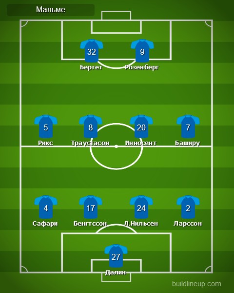 «Мальме»: Юхан Далин – Беранг Сафари (Йонас Кнудсен, 97), Расмус Бенгтссон, Лассе Нильсен, Эрик Ларссон (Гильермо Молинс, 79) – Серен Рикс, Арнор-Ингви Траустасон, Бонке Инносент (Эрдаль Ракип, 46), Фуад Баширу – Йо-Инге Бергет, Маркус Розенберг