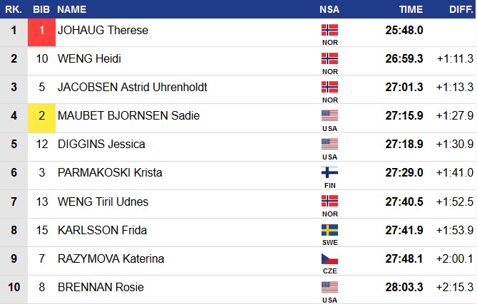 У женщин шансов соперницам не оставила Тереза Йохауг. Компанию на подиуме ей составили Хейди Венг и Астрид Якобсен.