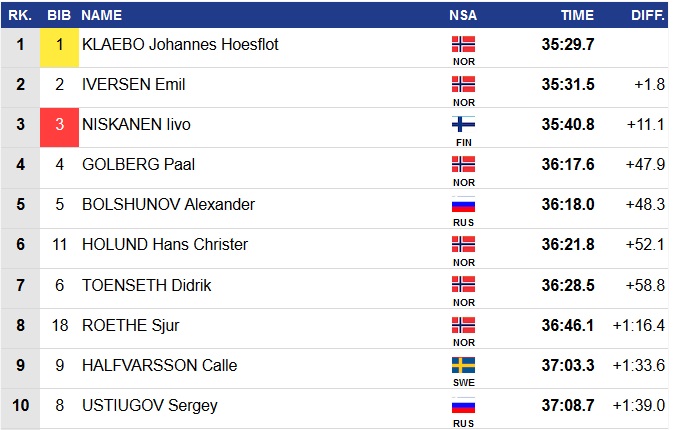 Действующий победитель Кубка мира Йоханнес Клэбо выиграл мини-тур в финской Руке. Норвежец сумел отстоять свое лидерство в гонке преследования на 15 км свободным стилем и опередил Эмила Иверсена и Иво Нисканена.
