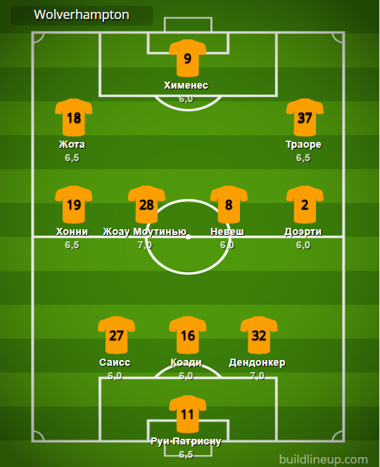 Вулверхэмптон: Руи Патрисиу – Саисс, Коади, Дендонкер – Хонни, Жоау Моутинью, Невеш, Доэрти – Жота (Нету, 71), Хименес (Кутроне, 84), Траоре (Беннетт, 89).