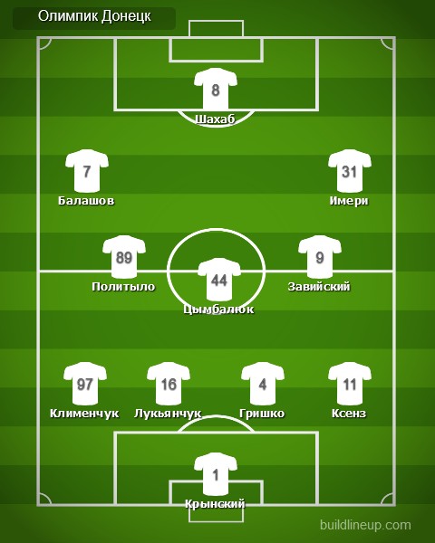 «Олимпик»: Владимир Крынский, Егор Клименчук, Павел Лукьянчук, Дмитрий Гришко, Павел Ксёнз, Сергей Политыло, Евгений Цымбалюк, Тарас Завийский (Фабиньо, 63), Виталий Балашов (Геннадий Пасич, 72), Шахаб (Чарльз Джеффри, 81), Демир Имери