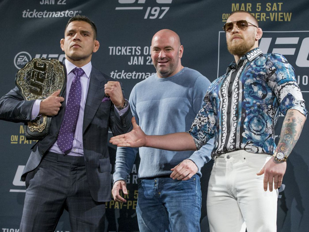 Став чемпионом UFC в полулегком весе в декабре 2015-го, МакГрегор в марте следующего года на UFC 196 решает отобрать у Дос Аньоса пояс в легком весе. Но бразилец ломает ногу и это приводит к тому, что МакГрегор поднимается еще выше – в полусредний вес, чтобы встретиться с Нейтом Диасом.