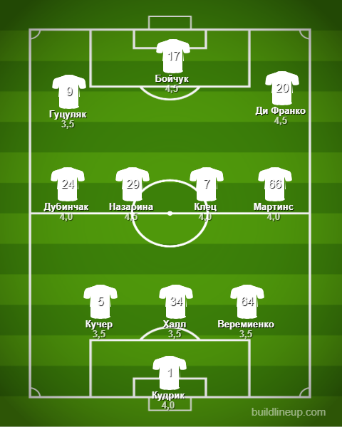 «Карпаты»: Кудрик - Веремиенко, Халл, Кучер (Артым, 59) - Мартинс, Клец, Назарина, Дубинчак- Ди Франко (Лях, 46), Бойчук, Гуцуляк (Деда, 68)