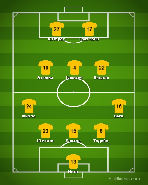«Барселона»: Нето – Хуниор Фирпо, Самюэль Юмтити, Клеман Лангле, Жан-Клер Тодибо, Мусса Ваге – Карлес Аленья, Иван Ракитич (Френки де Йонг, 63), Артуро Видаль – Карлес Перес (Ансу Фати, 85), Антуан Гризманн (Луис Суарес, 63)