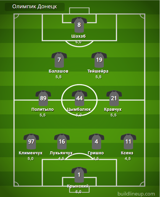 Олимпик: Крынский – Клименчук, Лукьянчук, Гришко, Ксенз – Политыло, Цымбалюк, Кравчук (Фабиньо, 90+1) – Балашов, Тейшейра (Е. Пасич, 66) – Шахаб (Джеффри, 87).