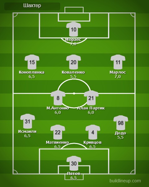 Замены «Шахтера»: Тете - 6,5; Майкон - б/о; Дентиньо - б/о.