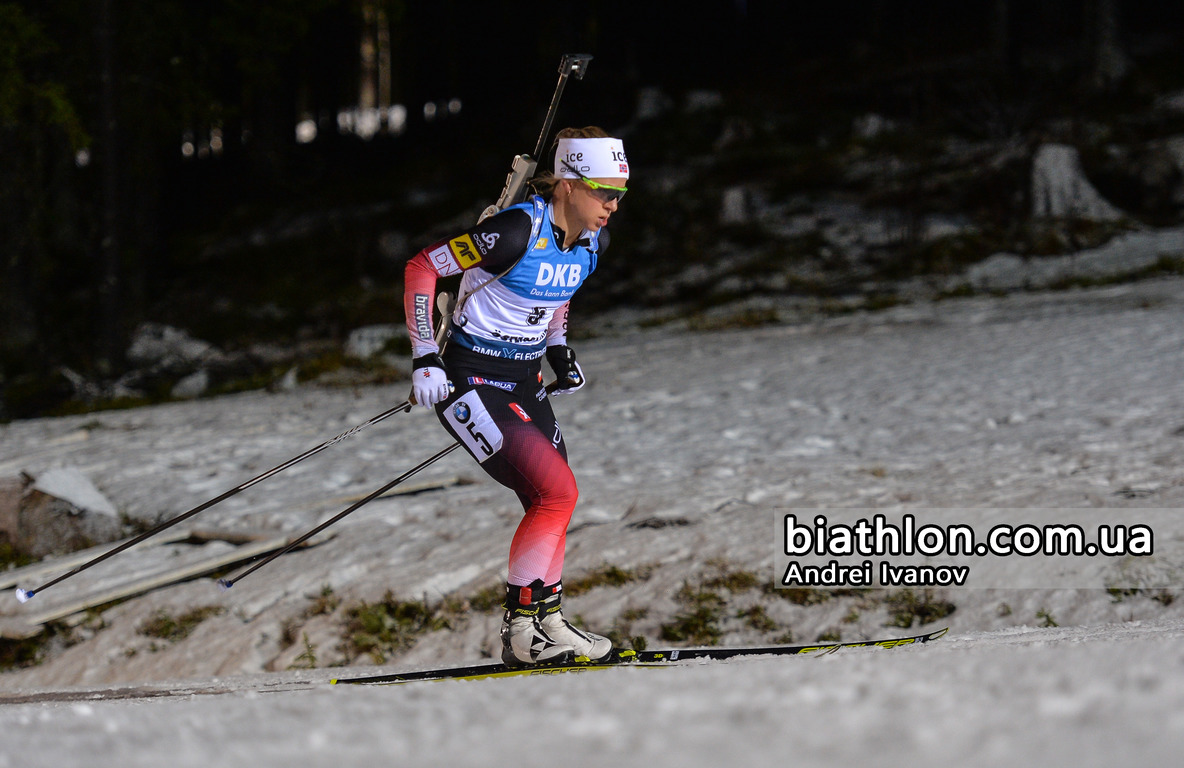 В женском спринте Елена Пидгрушная сумела показать лучший результат в сезоне. Закрыв все 10 мишеней, капитан заняла высокое девятое место. 30-я строчка в финишном протоколе покорилась Дарье Блашко. Также в очки попала Юлия Джима, с двумя промахами она показала 38-й результат.