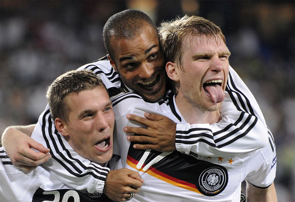 Пропущенный мяч встряхнул сборную Германии. Игроки «бундестима» задвигались активней, и первая же их серьезная атака принесла им на 26 минуте успех. Ударный дуэт из «Баварии» разыграл блестящую комбинацию – Подольски промчался по левому краю и сделал выверенную передачу на набегавшего Швайнштайгера. Тому оставалось лишь правильно подставить ногу, что он и сделал. 1:1.