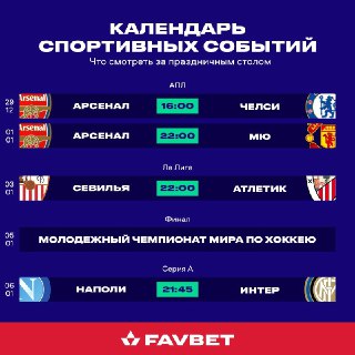 Тут, правда, остается немного посочувствовать некоторым спортсменам, а именно тем, кому будет не до отдыха. К радости же фанатов, их ждет несколько матчей топ-уровня, которые вряд ли кто –то захочет повторить. Favorit Sport приготовил для вас небольшую подборку основных событий, которые обязательно украсят новогоднюю программу болельщиков.