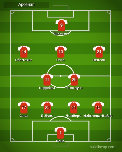 18 мин. Нелсон прострелил с правого фланга и Обамеянг скинул мяч на Ляказетта, который слишком долго готовил удар!