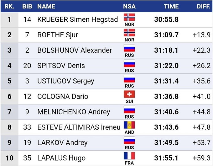 Российский лыжник Александр Большунов стал победителем Тур де Ски-2020, сумев опередить своего партнера по команде Сергея Устюгова. Йоханнес Клэбо на финальном этапе отступил на третье место в общем зачете.