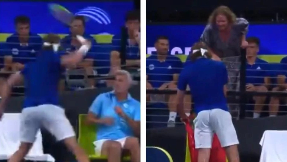 ВИДЕО. Циципас разбил ракетку, ранил отца, на игрока накричала мать