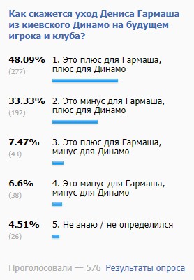 Более 81% опрошенных считают, что этот трансфер является положительным для «Динамо» (48.1% думают, что это плюс и для игрока, а вот 33.3% оценивают переход как негатив для футболиста). То есть, в оценке трансфера для самого игрока мнения разделились, но большинство респондентов все же видит в этом событии позитив для Гармаша.