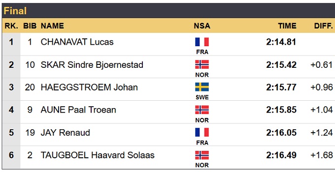 Французский лыжник Лука Шанава выиграл коньковый спринт в немецком Дрездене. В финале он опередил Синдре Бьорнестада Скара и Йохана Хэггстрема.