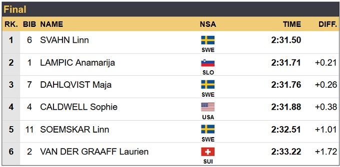 У женщин победу одержала шведка Линн Сван. Компанию на подиуме ей составили Анамария Лампич и Майя Дальквист.