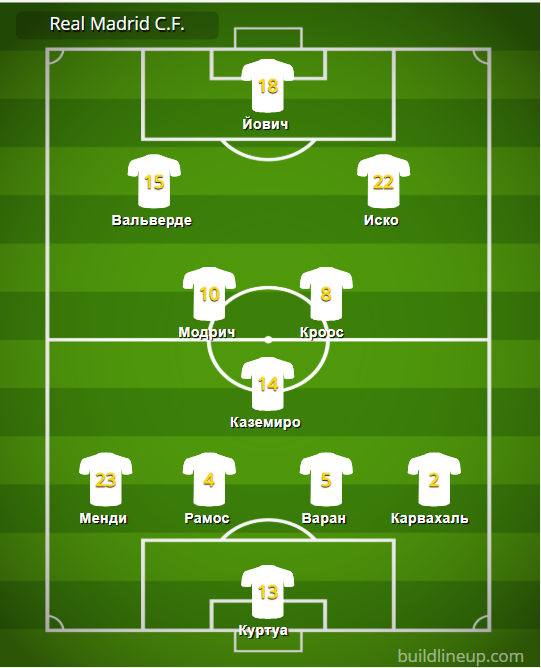 Реал: Куртуа – Менди, Рамос, Варан, Карвахаль – Модрич, Каземиро, Кроос (Винисиус, 102) – Вальверде, Иско (Родриго, 60) – Йович (Мариано Диас, 83).