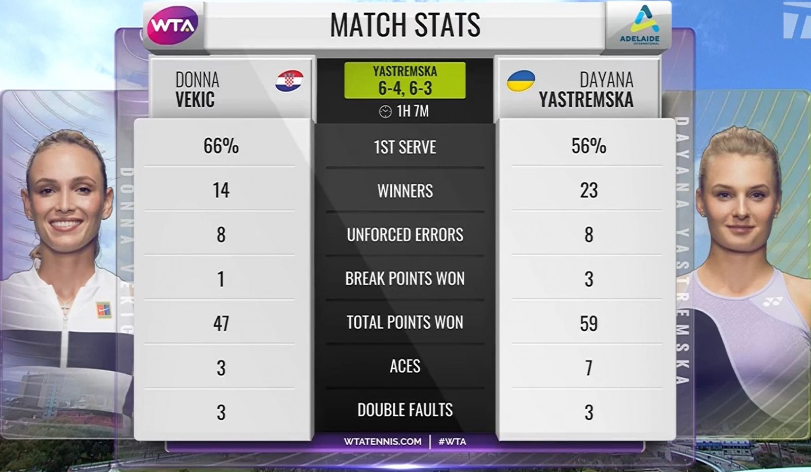 Аделаида. Ястремская обыграла Векич в четвертьфинале