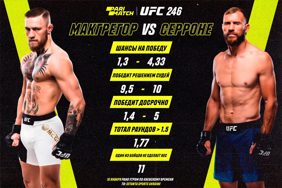 19 января нас ждет возвращение Конора Макгрегора в октагон. В Лас-Вегасе в рамках серии боев UFC 246 легендарный ирландец будет драться с Дональдом Серроне по прозвищу Ковбой.