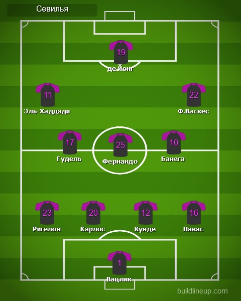 «Севилья»: Томаш Вацлик, Жюль Кунде, Хесус Навас, Серхио Регилон, Диего Карлос, Неманья Гудель, Фернандо, Эвер Банега (Маркуш Лопеш, 80), Франко Васкес (Оливер Торрес, 75), Люк де Йонг, Мунир Эль-Хаддади (Юссеф Эль-Несири, 66)