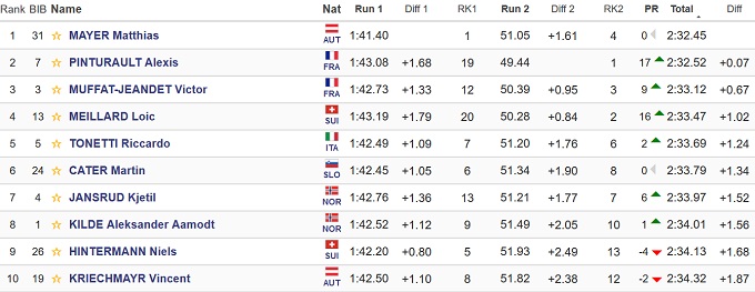 Австрийский горнолыжник Маттиас Майер выиграл комбинацию в Венгене. Алексис Пинтуро стал вторым и перехватил лидерство в общем зачете Кубка мира.