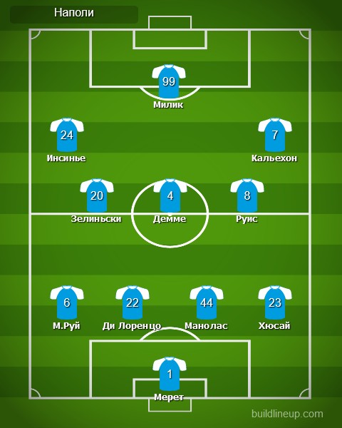 «Наполи»: Алекс Мерет, Мариу Руй, Джованни Ди Лоренцо, Костас Манолас, Эльсеид Хюсай, Пётр Зелиньски (Элиф Элмас, 81), Диего Демме (Станислав Лоботка, 69), Фабиан Руис, Аркадиуш Милик, Лоренцо Инсинье, Хосе Кальехон