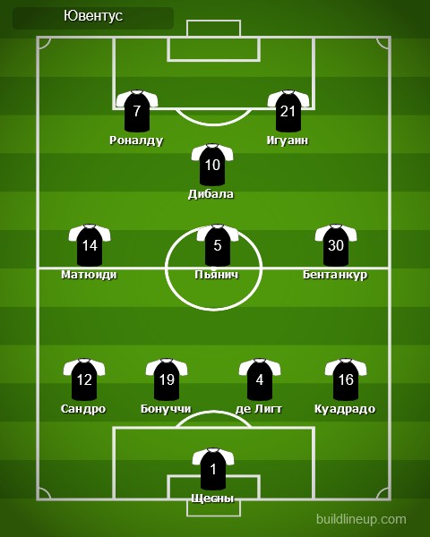 «Ювентус»: Войцех Щесны, Леонардо Бонуччи, Маттейс де Лигт, Алекс Сандро, Хуан Куадрадо, Блез Матюиди (Дуглас Коста, 72), Миралем Пьянич (Адриен Рабьо, 50), Родриго Бентанкур, Криштиану Роналду, Пауло Дибала (Федерико Бернардески, 72), Гонсало Игуаин