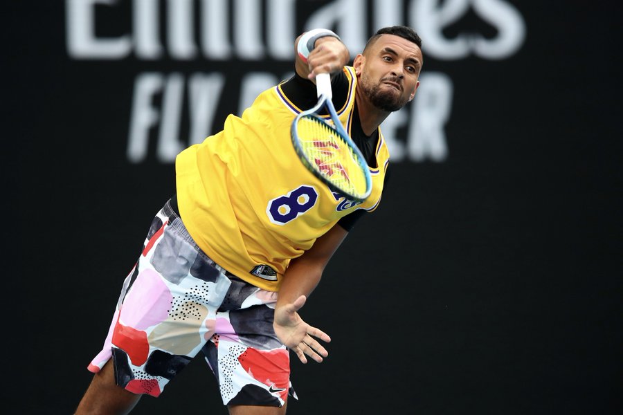 Австралийский теннисист Ник Кирьос почтил память трагически погибшего баскетболиста Коби Брайанта перед матчем четвертого круга Открытого чемпионата Австралии.