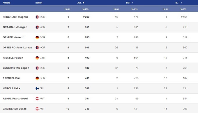 Однако с нынешнего сезона организаторы решили сделать многодневку максимально сбалансированной. В последний день мини-тура двоеборцы соревновались на трамплине только в одну попытку. И это давало шансы на успех двоеборцам-универсалам вроде Винценца Гайгера и Йоргена Гробака. И уровень результатов немца и норвежца на трамплине действительно позволял им рассчитывать на борьбу с Риибером.