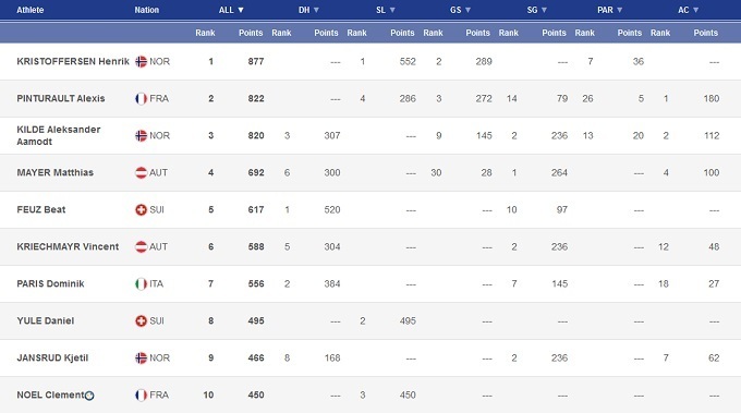 Ситуация в общем зачете внезапно резко изменилась: Кристофферсен теперь выигрывает всего 55 очков у Пинтуро и 57 - у Килде. При этом январь, самый насыщенный период с точки зрения слаломов, подошел к концу – возможностей отыграться у преследователей Хенрика теперь будет более чем достаточно.