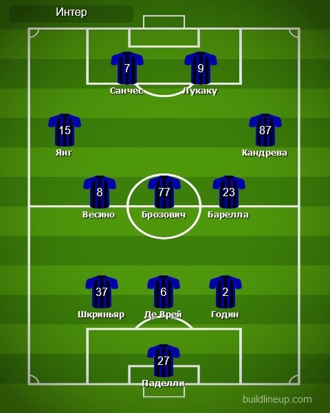 Запас: Самир Ханданович, Филип Станкович, Квадво Асамоа, Кристиано Бираги, Данило Д'Амброзио, Андреа Раноккия, Люсьен Агум, Борха Валеро, Виктор Мозес, Стефано Сенси, Себастьяно Эспозито