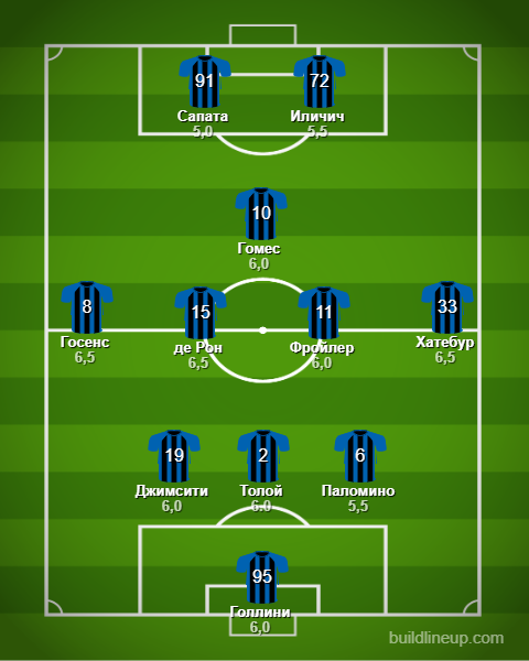 «Аталанта»: Голлини - Паломино, Толой, Джимсити - Хатебур, Фройлер, Гомес (Муриель,87) , де Рон, Госенс - Иличич (Малиновский, 84), Сапата (Пашалич, 58)