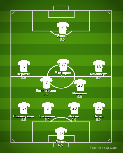 Манчини (10), Мхитарян (27), Фасио (88) - Госенс (55)