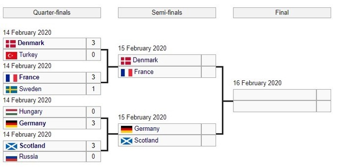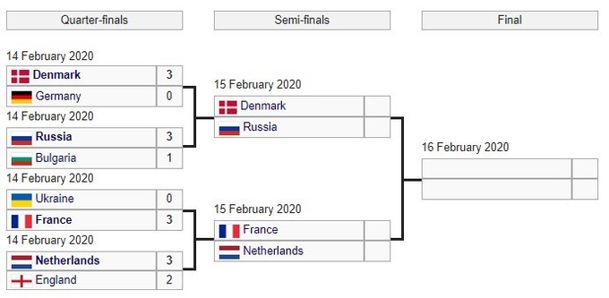 Украинская команда вошла в топ-8 лучших команд, выиграв свою группу. Но на стадии 1/4 финала украинцы проиграли стыковой матч сильной сборной хозяев турнира, Франции (0:3).