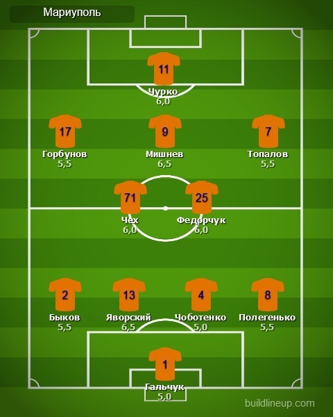 «Мариуполь»: Евгений Гальчук, Павел Полегенько, Алексей Быков, Сергей Яворский (Андрей Кулаков, 80), Сергей Чоботенко, Валерий Федорчук, Максим Чех (Даниил Игнатенко, 46), Дмитрий Мишнёв, Сергей Горбунов, Вячеслав Чурко, Дмитрий Топалов (Руслан Фомин, 65)