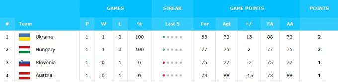 Украина – Венгрия – 60:62 (14:10, 16:18, 18:19, 12:15).