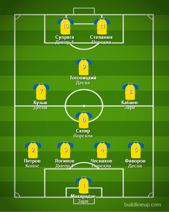 Владислав Супряга («Днепр-1»). Лучшая замена текущего чемпионата Украины. Выйдя на 63-й минуте вместо Чичикова при счете 1:0 в пользу «Динамо», за отведенное на поле время Супряга отличился трижды, принеся уверенную победу своей команде (3:1). Стоит отметить, что контракт Супряги принадлежит именно «Динамо», футболист защищает цвета «Днепра-1» на правах аренды.