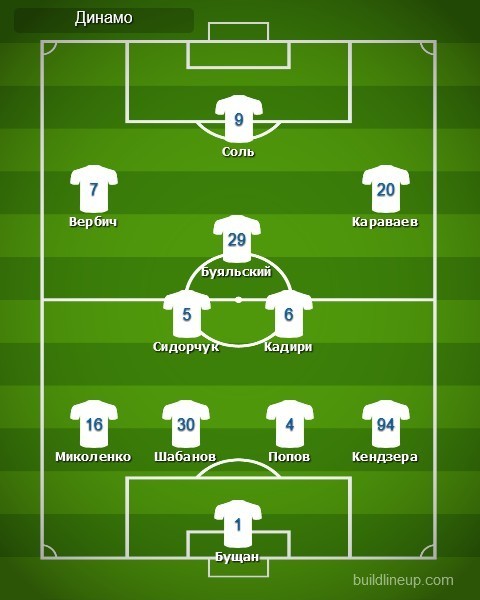 «Динамо»: Георгий Бущан, Томаш Кендзёра, Виталий Миколенко, Артем Шабанов, Денис Попов, Сергей Сидорчук, Виталий Буяльский (Владимир Шепелев, 84), Беньямин Вербич (Александр Андриевский, 117), Мохаммед Кадири, Александр Караваев (Виктор Цыганков, 87), Фран Соль (Назарий Русин, 46)