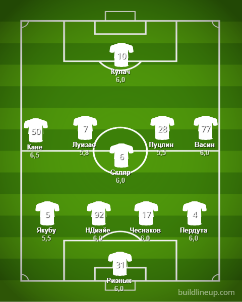 Кузык (41), Тамм (65), Ермаков (74) - Кане (35), Васин (40), Луизао (41), Якубу (55), Баенко (60), Скляр (76)
