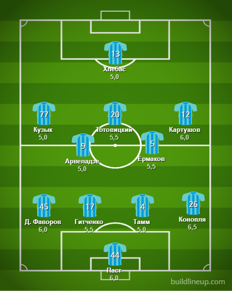 «Ворскла»: Ризнык, Якубу, Кане, Чеснаков (Баенко, 46), Пердута, Скляр, Луизао, Пуцлин, НДиайе, Кулач (Степанюк, 46), Васин (Кравчук, 70)