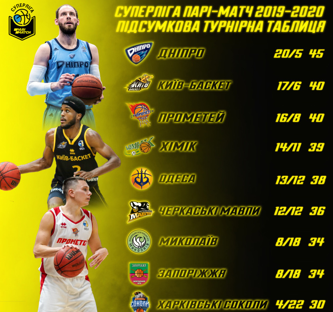 В пятницу был назван чемпион Суперлиги, которым стал БК «Днепр». Команда на момент остановки чемпионата лидировала в турнирной таблице.