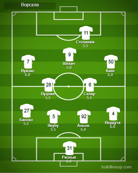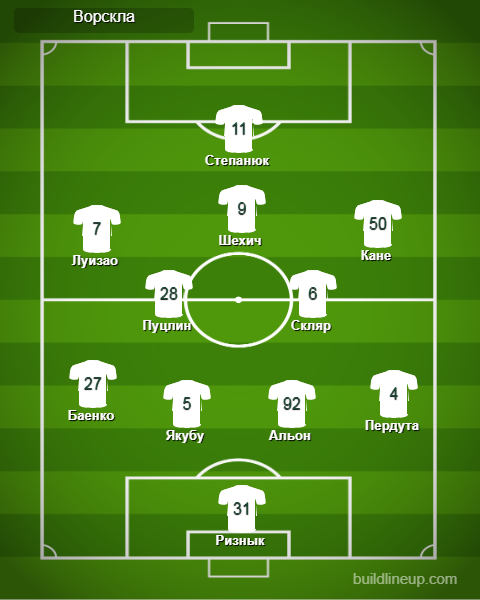 «Ворскла»: Ризнык, Пердута, Альюн, Якубу, Баенко, Скляр, Пуцлин (Ребенок, 80), Шехич (Кулач, 34), Луизао (Васин, 68), Кане, Степанюк