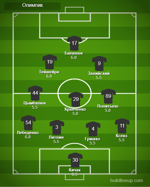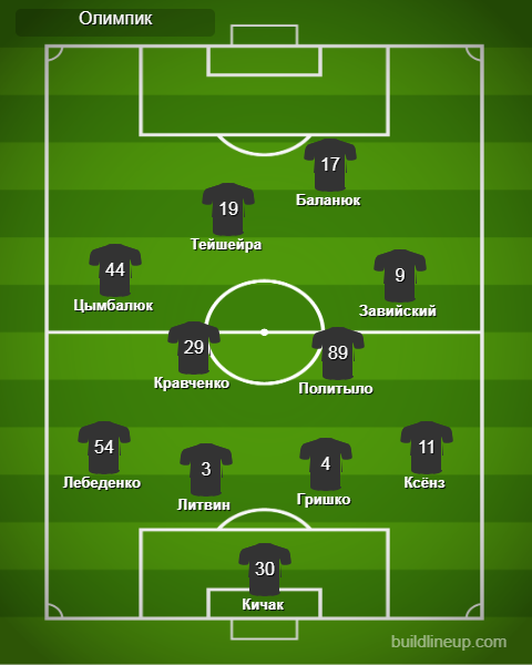 «Олимпик»: Кичак, Лебеденко, Литвин, Гришко (Романовский, 75), Ксёнз, Цымбалюк, Завийский, Политыло, Кравченко (Балашов, 64), Тейшейра (Чогадзе, 84), Баланюк