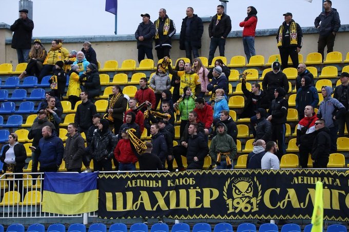 ФОТО. Фаны солигорского Шахтера вывесили на трибуне украинский флаг
