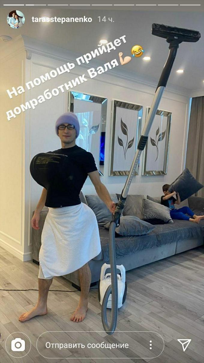 «Если во время карантина жена заставляет делать уборку — на помощь придет домработник Валя», — написал Степаненко в Instagram, представ перед подписчиками в образе, чем-то напоминающем костюм известной Верки Сердючки.